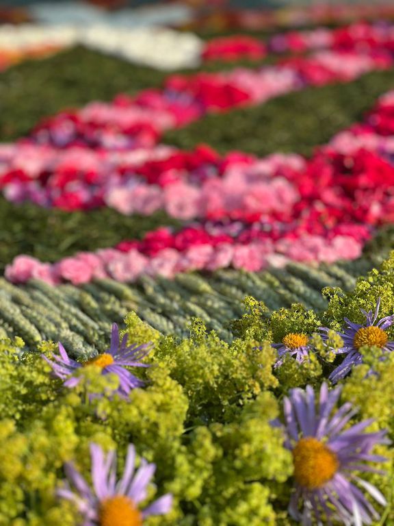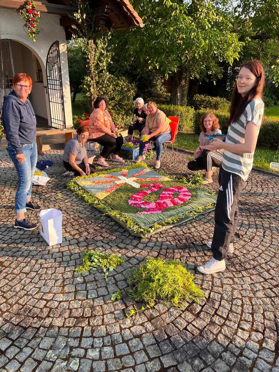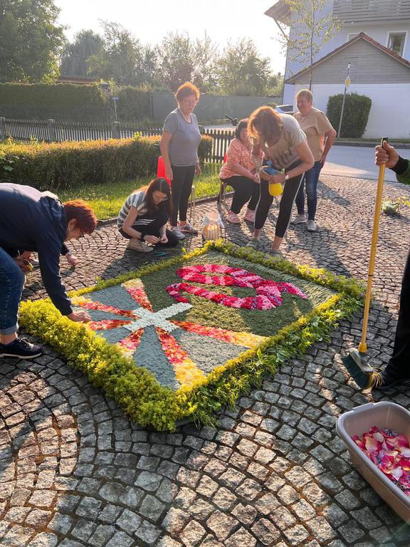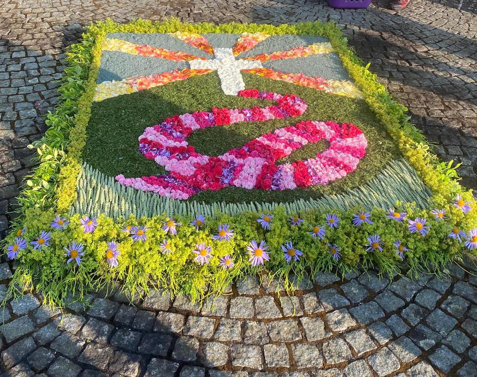 diesem Jahr in voller Pracht. Die Teilnehmerinnen und Teilnehmer der Prozession zeigten sich begeistert von der kunstvollen Gestaltung und der Farbenpracht des Teppichs.