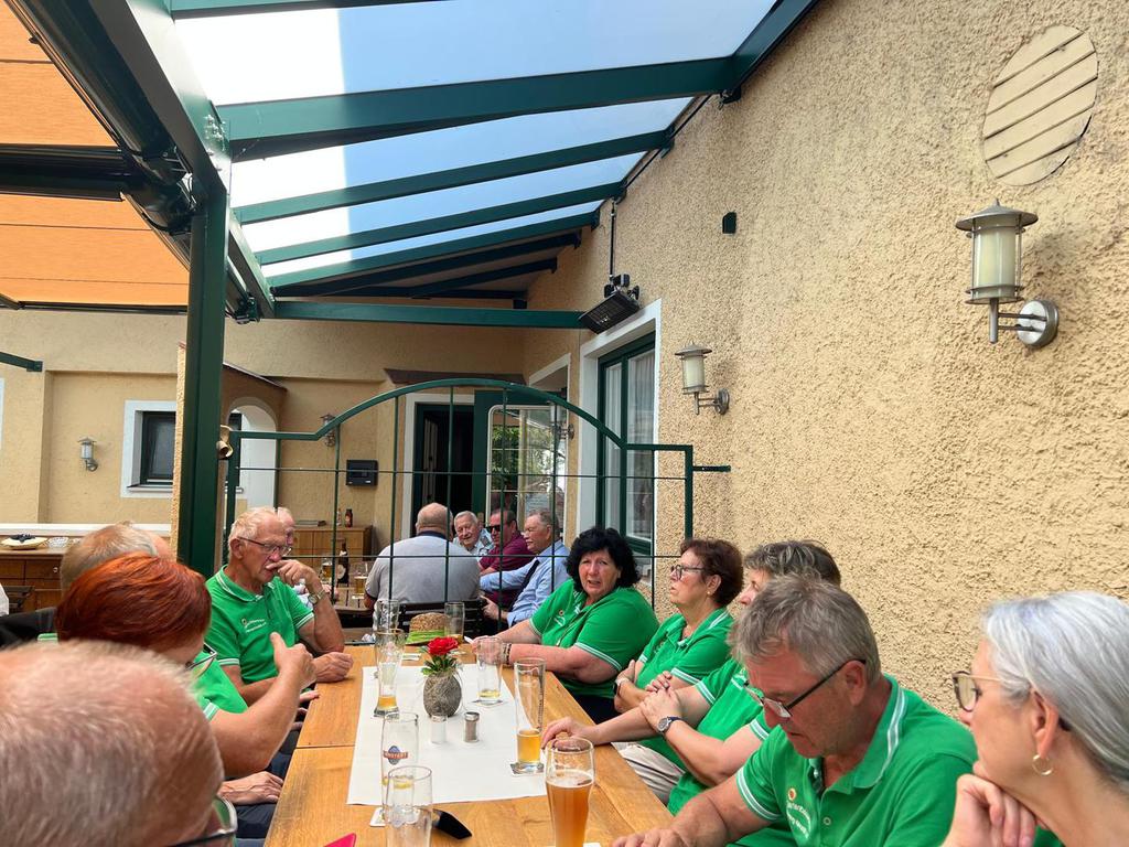 Nach der Prozession fand eine gemütliche Einkehr im Gasthaus Auer in Heining statt, bei der die teilnehmenden Mitglieder in ihren Vereins-T-Shirts den erfolgreichen Tag ausklingen ließen.