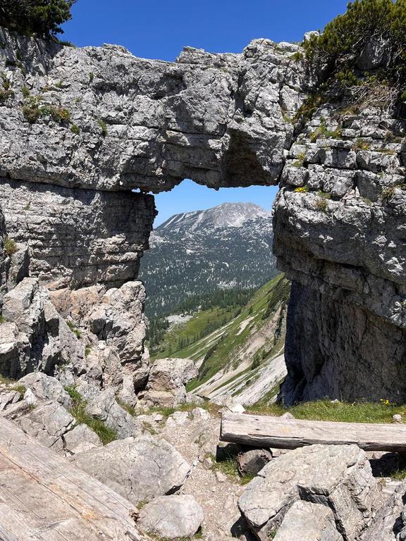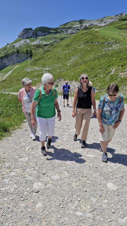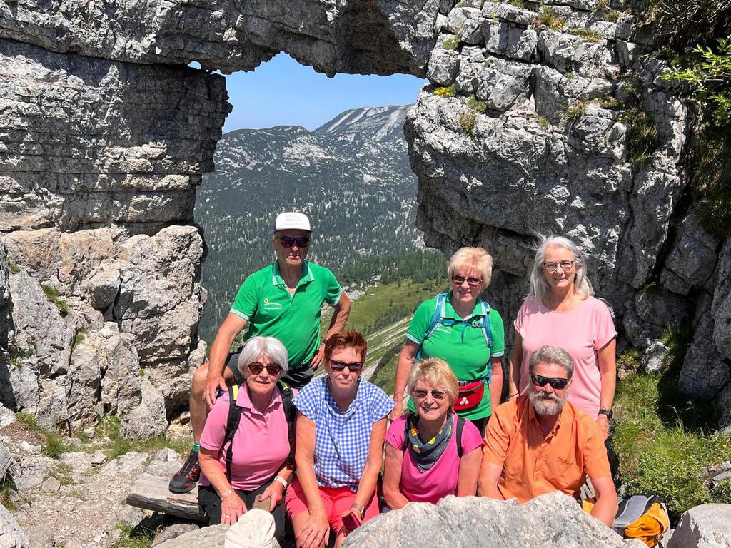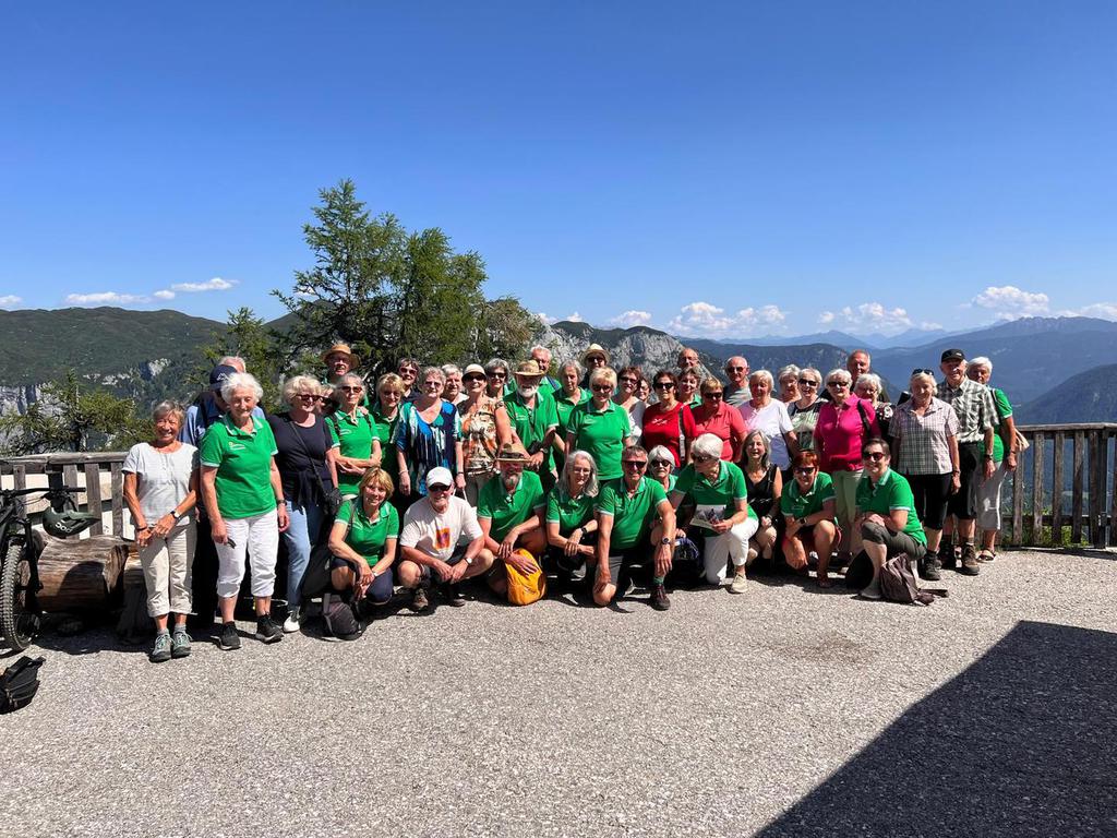 Von der Loser Alm aus ging es für einige Mitglieder steil bergauf zum Augstsee, den sie umrundeten und dabei Alpenblumen wie Alpenrose, Frühlingsaster, Täschelkraut, Trollblume und Enzian bewunderten. Andere wanderten weiter zum Loserfenster, einem bekannten Felsentor mit einem traumhaften Blick ins Tote Gebirge, besonders zum großen Schönberg. Einige mutige gingen noch weiter zum Hochanger, von wo aus man den Blick auf den Loser und sogar auf versteinertes Holz in den Felsen genießen konnte. Das Gebiet ist auch bekannt als Drehort für den Thriller „Der letzte Tempelritter“ mit Nicolas Cage.