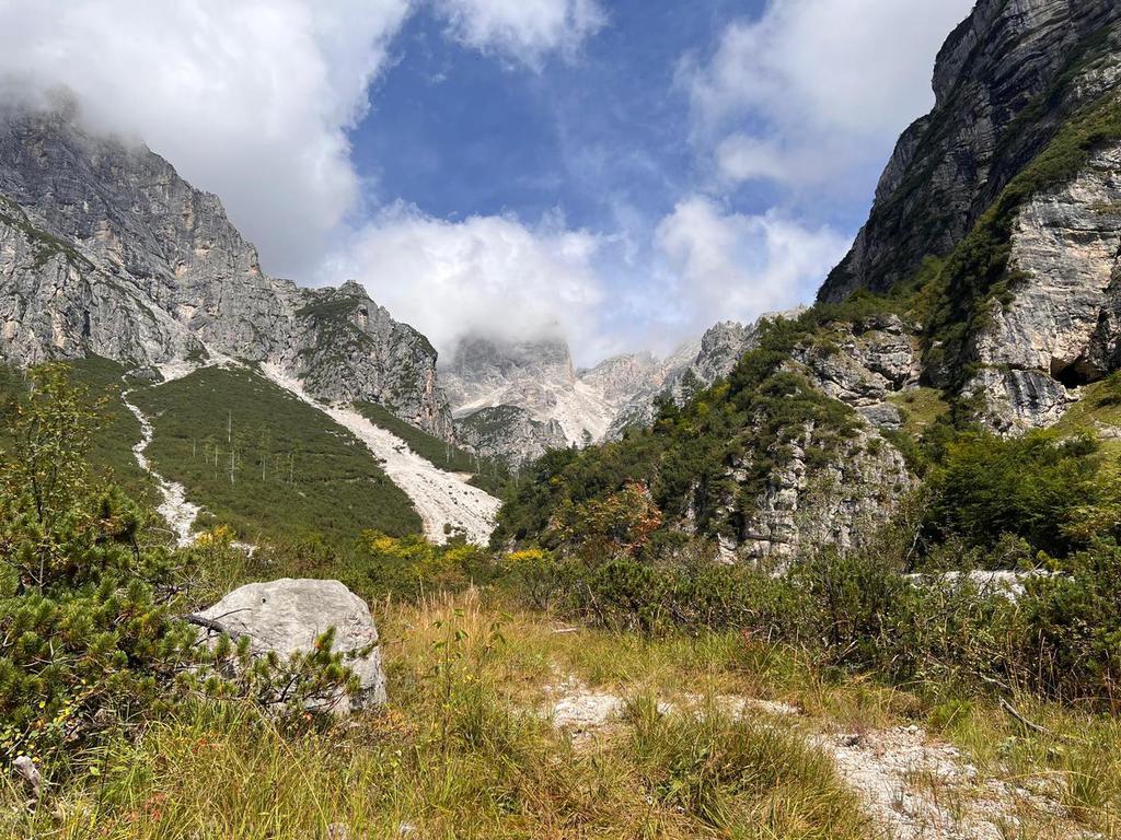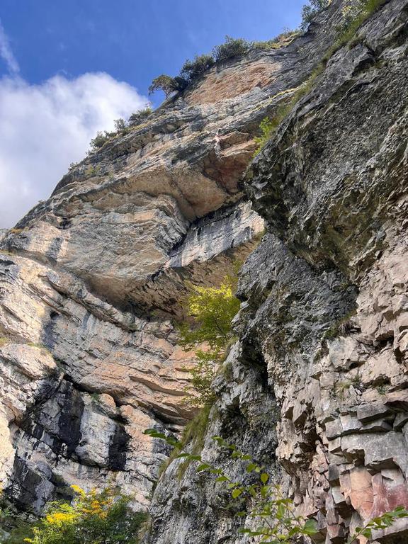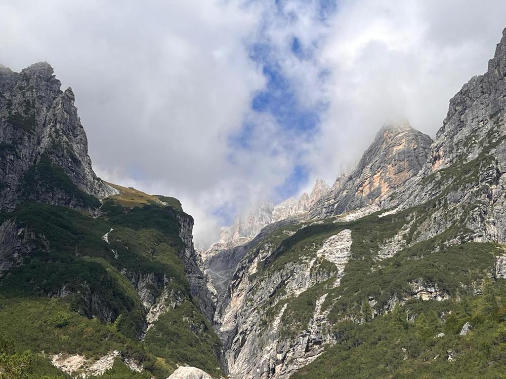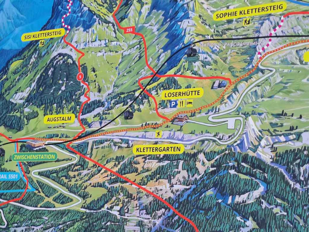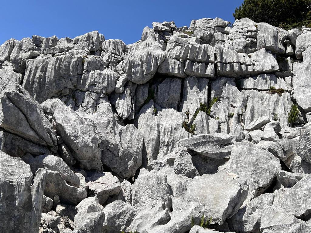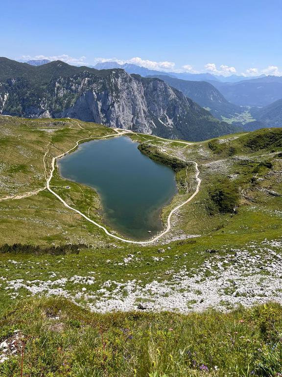 Der Rückweg führte durch einen anspruchsvollen Felskamin, bei dem die Hände zum Vorankommen gebraucht wurden. Danach wurde die Gruppe auf der Terrasse der Loser Alm mit leckerem Essen und Musik (Danzlmusi) verwöhnt, während sie zum Ausklang des Ausflugs den herrlichen Ausblick auf die Bergwelt und das Dachsteinmassiv genoss.