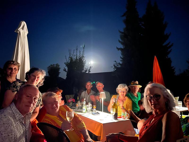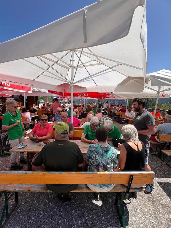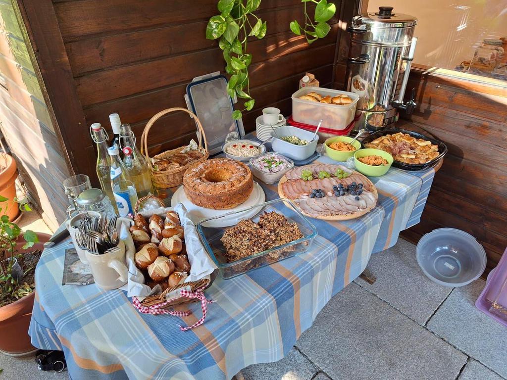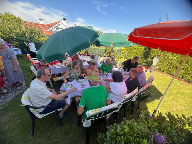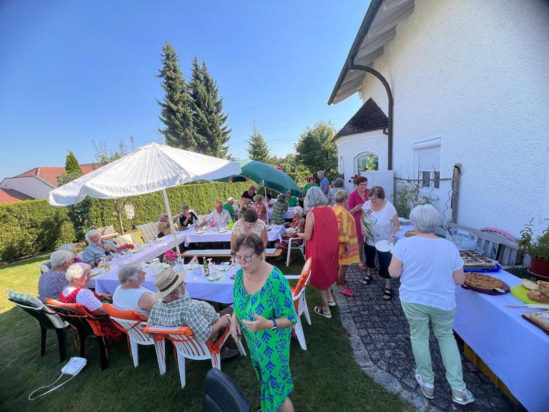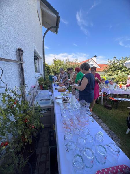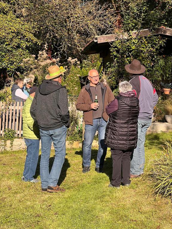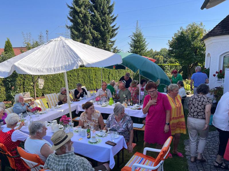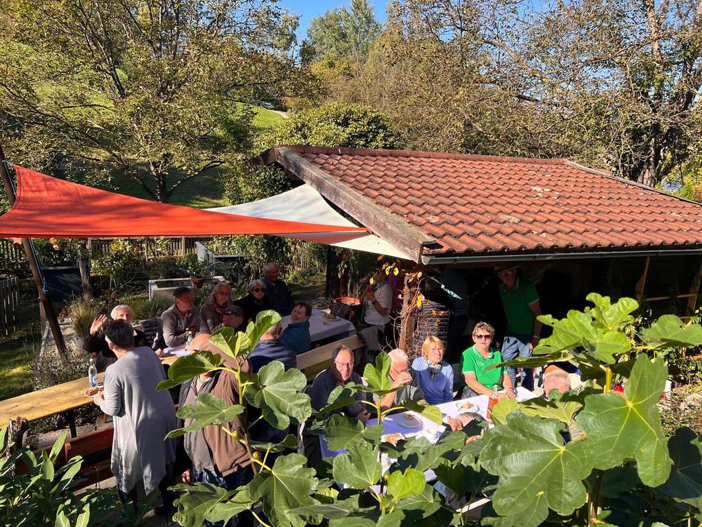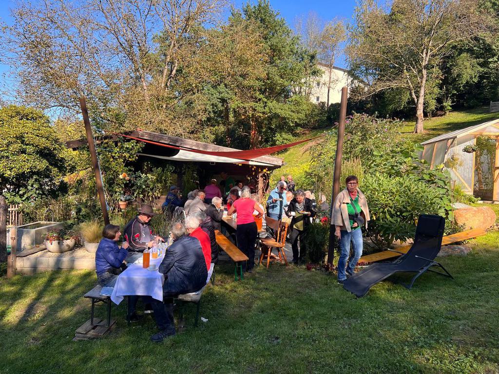 Im Anschluss an die Wanderung trafen wir uns zur gemütlichen Einkehr im Gartengrundstück eines unserer Vereinsmitglieder. Insgesamt fanden sich 34 Teilnehmende zur Einkehr ein. Der Nachmittag begann mit Kaffee und selbstgebackenem Kuchen, gefolgt von einem reichhaltigen und abwechslungsreichen kalten Buffet, das von unseren Vereinsmitgliedern liebevoll vorbereitet wurde.
